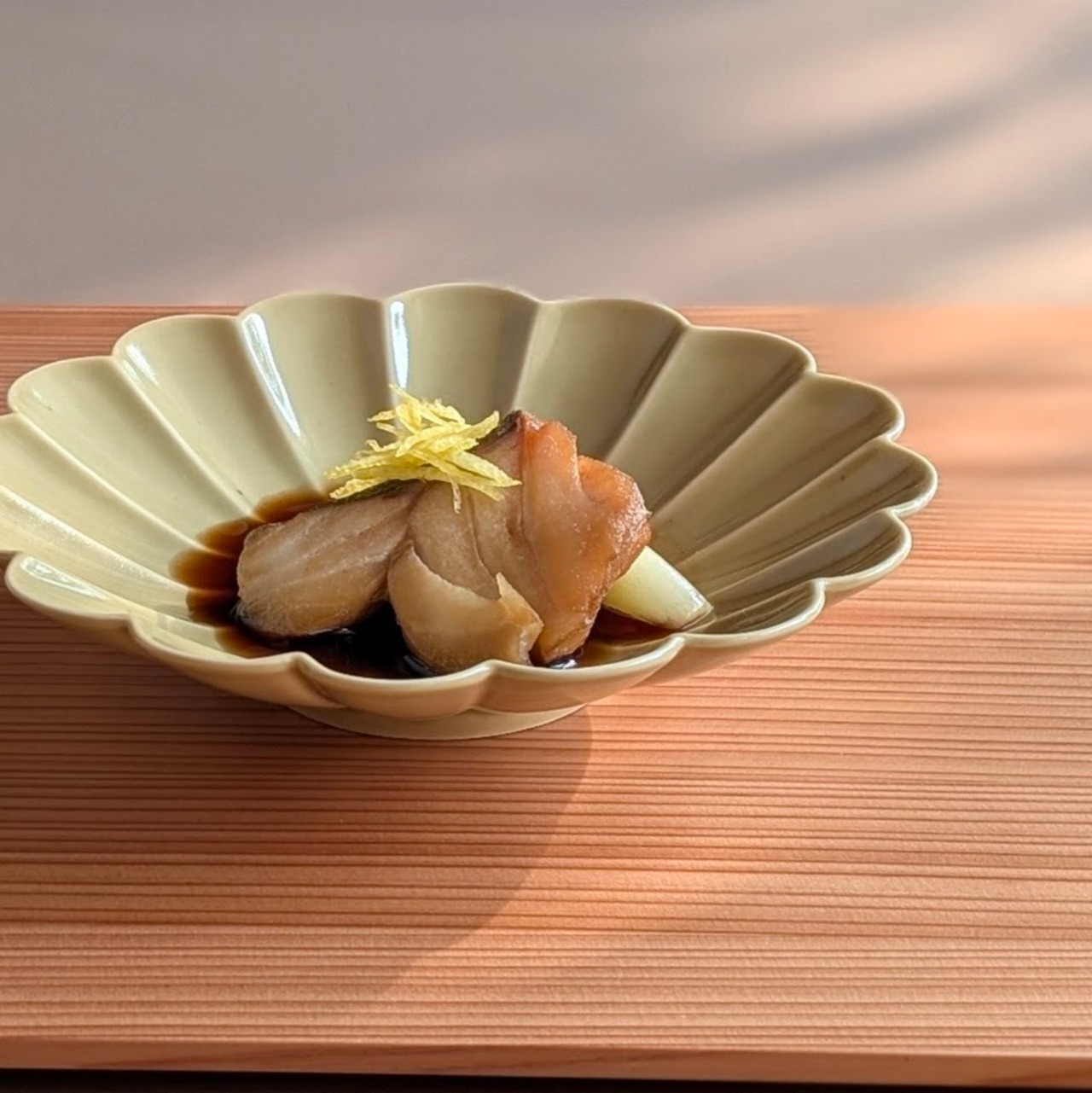 うぐいす釉 菊紋皿中
