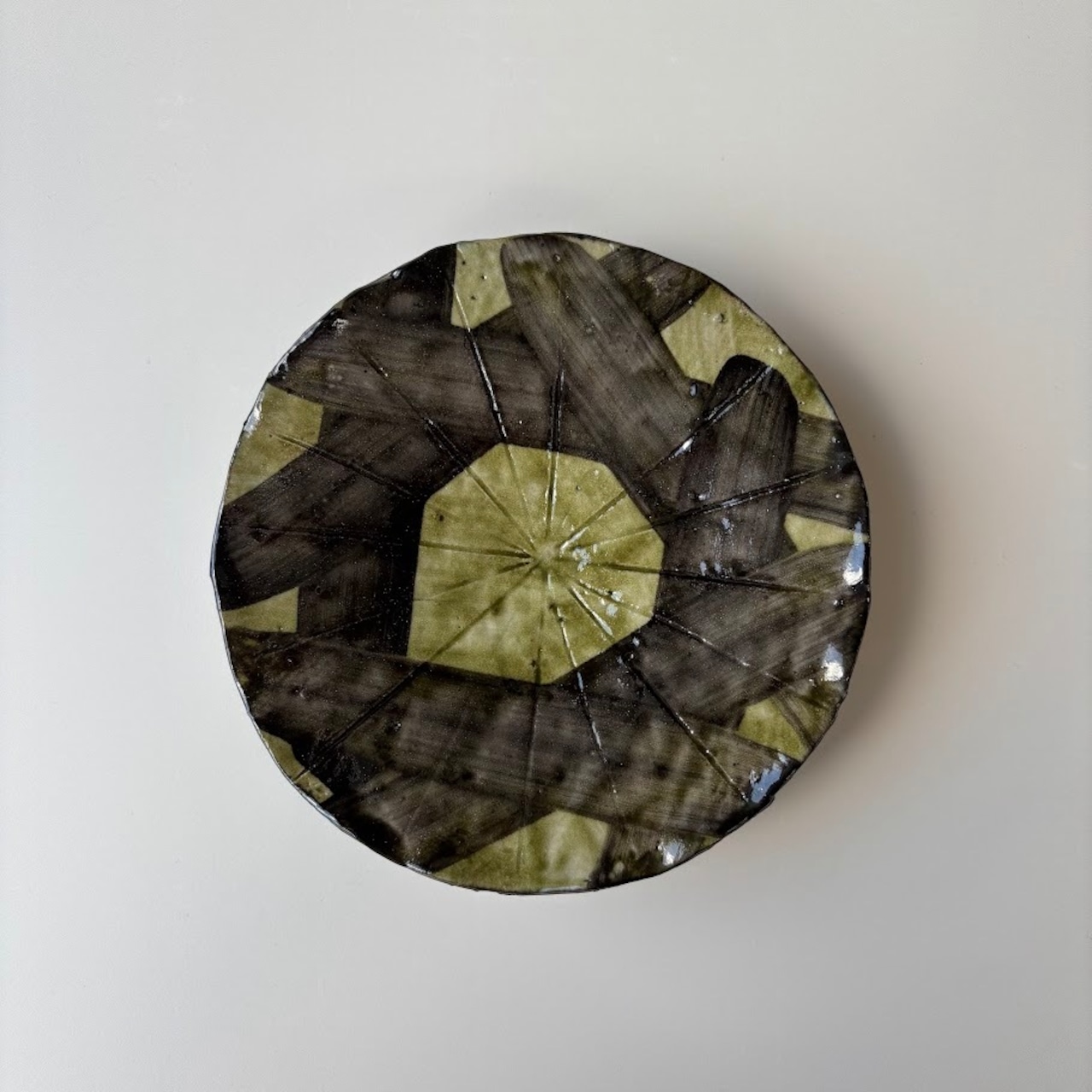 鶯交趾黒刷毛 高台小皿