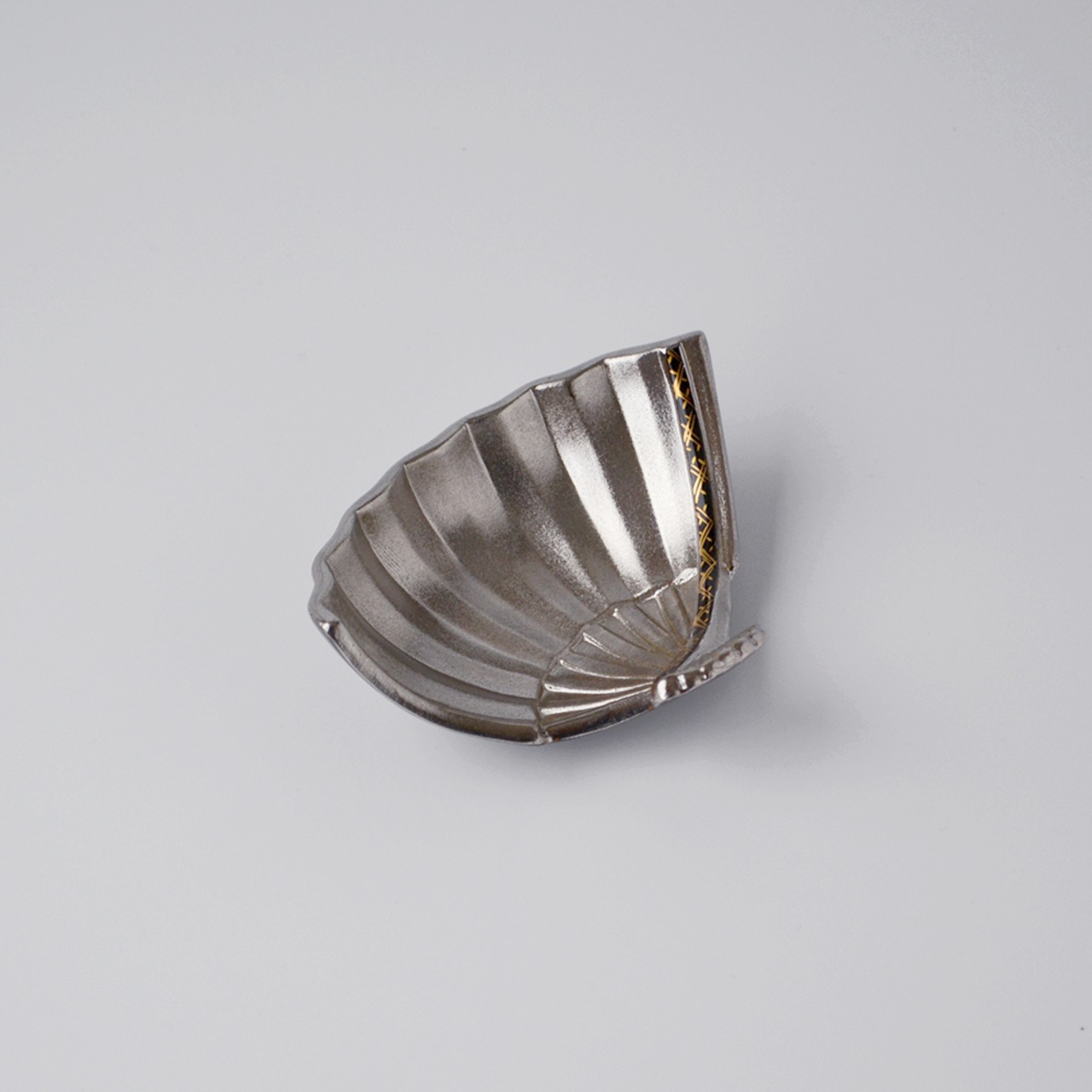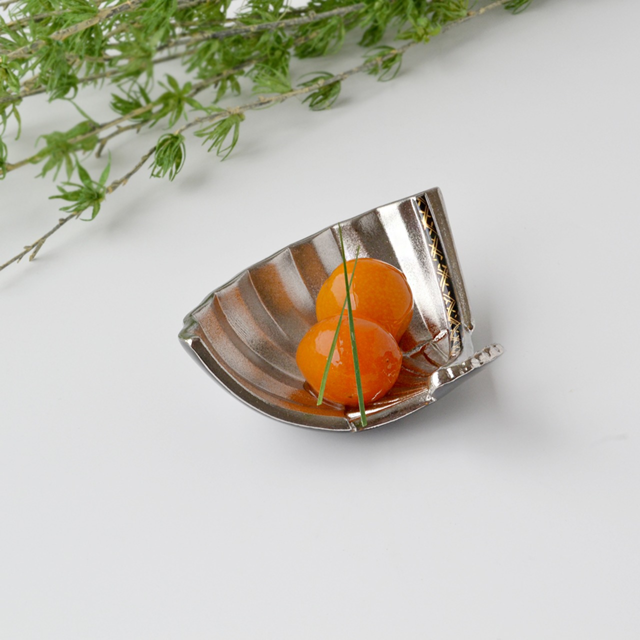 プラチナ黒釉地紋 扇型珍味入